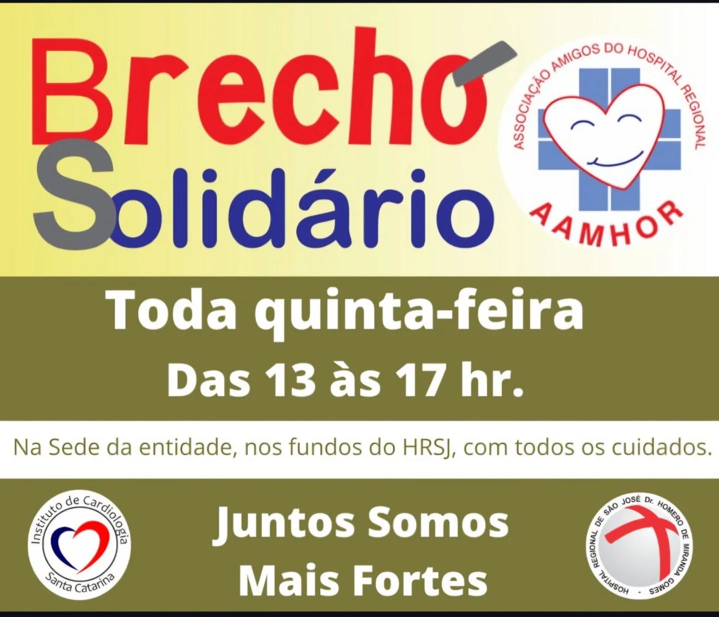 Nosso Brechó tem como objetivo, arrecadar recursos para ajudar nos custos de aquisição de kits de higiene, pijamas dentre outras necessidades, para atender aos pacientes do Hospital Regional de São José e do Instituto de Cardiologia de Santa Catarina.