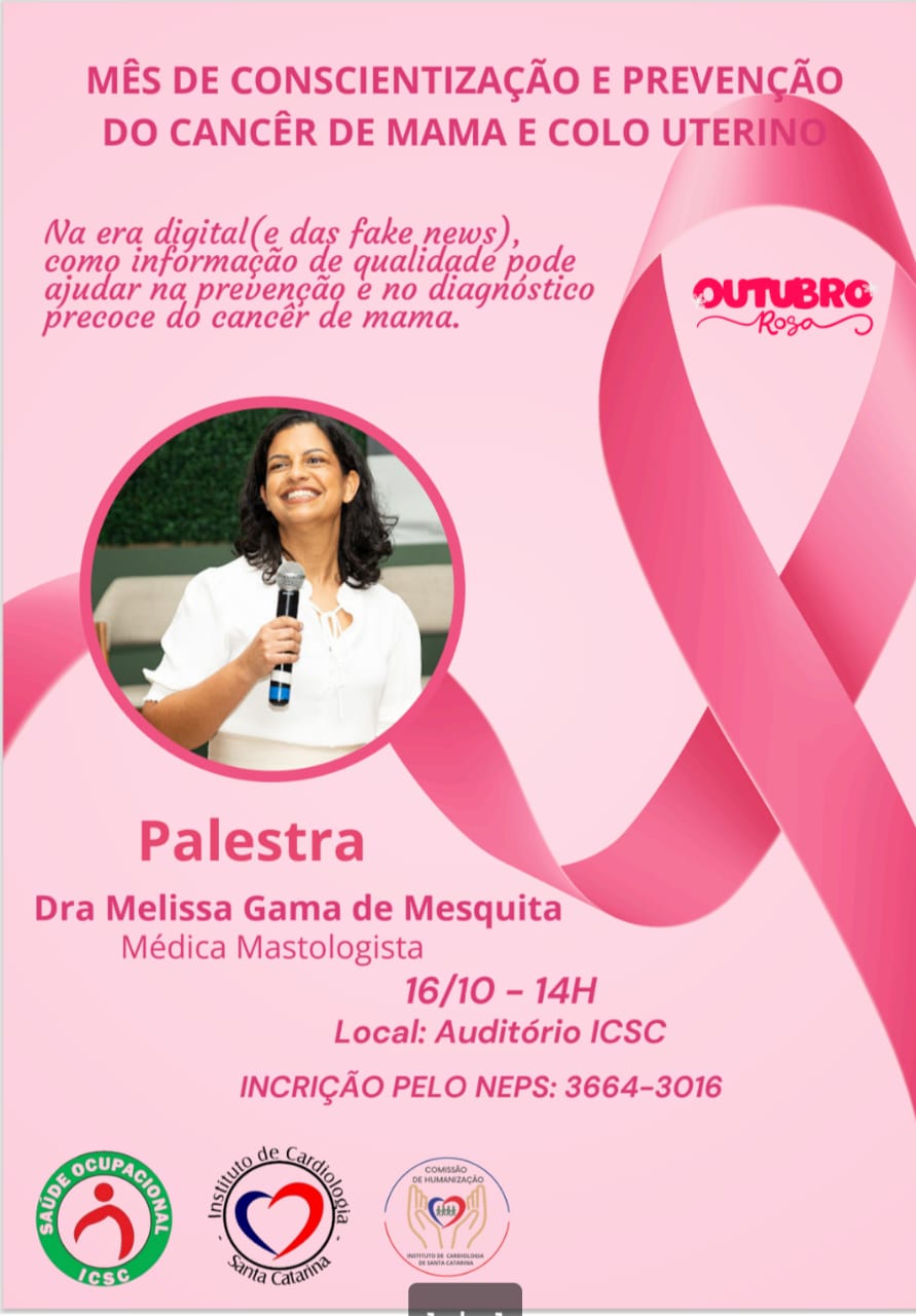 Neste mês de outubro, muitas ações internas e externas foram realizadas no HRSJ e ICSC, pelas comissões de Humanização e Educação Permanente, Saúde Ocupacional e o NEPS, para a conscientização de prevenção contra o câncer de mama e colo de útero.